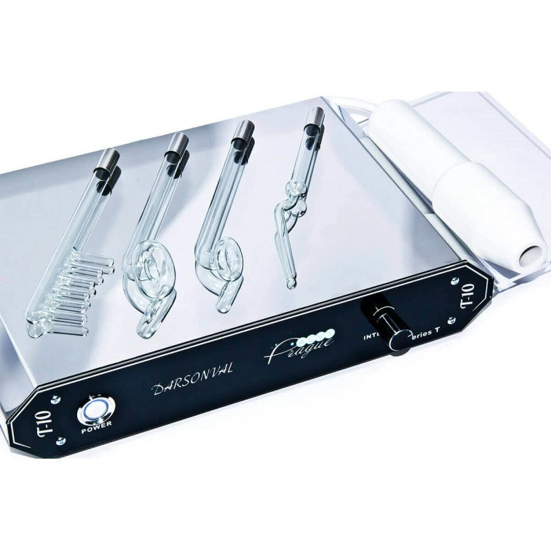 Using an 8-25 kV electrical current, the T-10 high-frequency device provides a therapeutic and regenerative effect thanks to its precise selection of a specific frequency (100-350 Hz). This is achieved without causing any painful sensation, with the most discomfort described as "a slight tingling or crawling sensation."