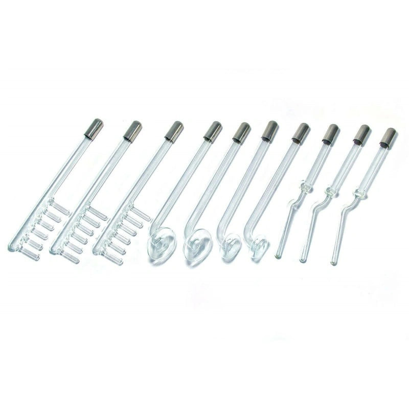- 10 glass electrode nozzles of various shapes and sizes filled with ionized gas molecules