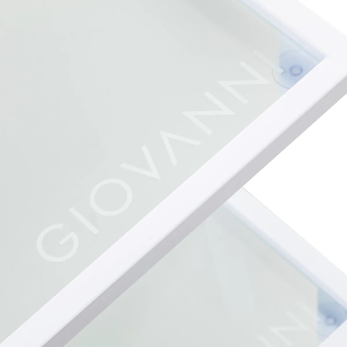 - Simple Construction: Made with a durable aluminum frame in white tones and glass shelves, it combines elegance with practicality, ensuring the durability and stability of the furniture.