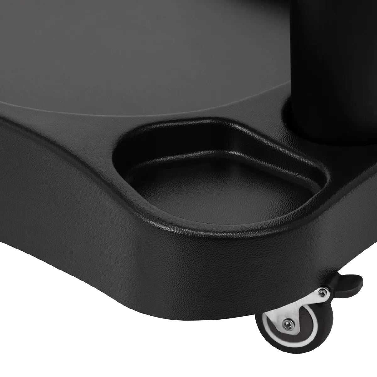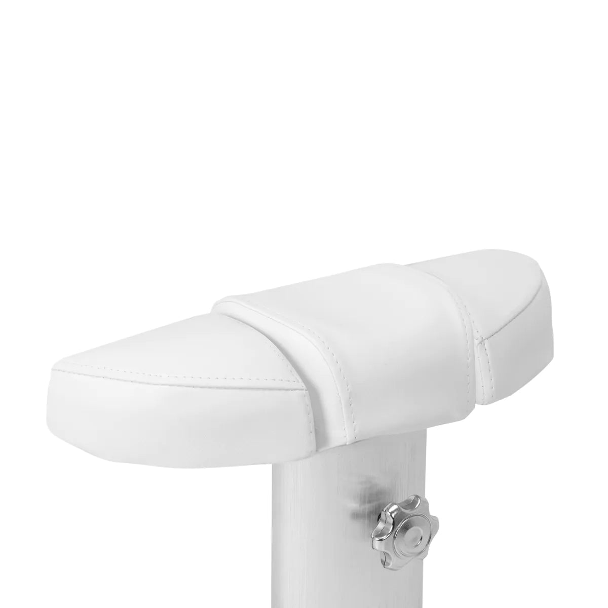 El set profesional de pedicura Azzurro reúne un pediluvio con funciones de masaje y control de temperatura y un carrito ajustable con reposapiés, formando una estación de trabajo ergonómica y móvil. El pediluvio contorneado facilita la colocación del pie y ofrece masaje y regulación térmica para mayor confort del cliente; su construcción robusta y materiales fáciles de limpiar garantizan higiene y durabilidad en uso intensivo. El carrito ajustable permite adaptar la altura manualmente hasta 20 cm, cuenta con tapicería en cuero sintético resistente a la humedad y ruedas de goma con bloqueo para desplazamiento seguro y organización del puesto. El conjunto, de estética moderna en tonos negros, aporta funcionalidad y una imagen profesional a salones de belleza y consultas de podología.